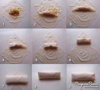 adicione o amido e cozinhe até obter um molho brilhante e cremoso. Montagem dos rolinhos primavera: